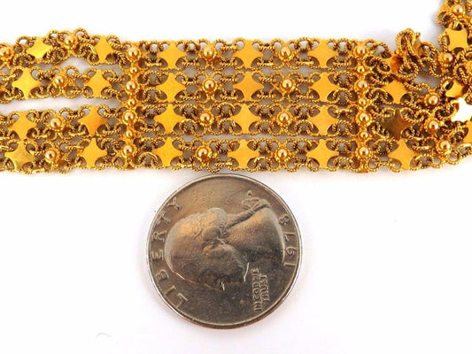 18kt. yellow gold vintage wide caliber bracelet mesh Hinged linked beads 7.50