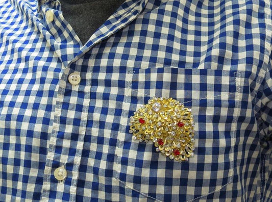 Erwin Pearl 8.00 Carat Natural Diamonds and Red Spinel Brooch 18Kt Ref 12332