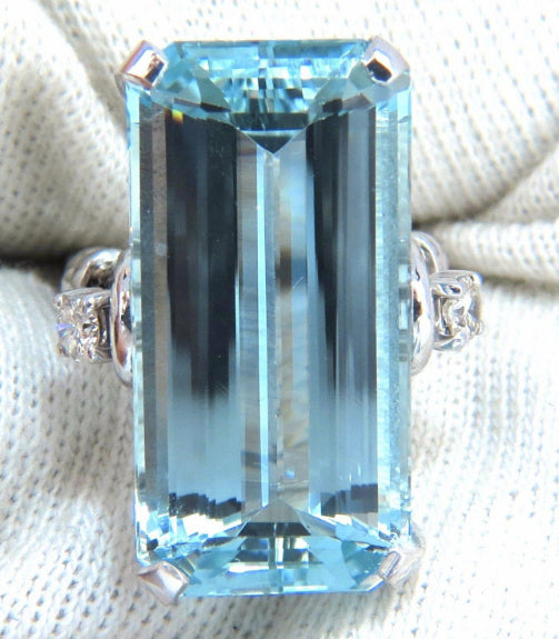 GIA Certified 19.67 Carat Natural "Blue" Aquamarine Diamonds Ring Vivid Long Cut