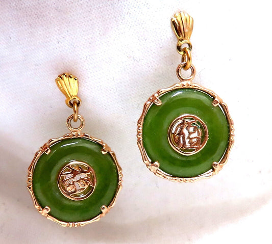 Estate Circular Jade Dangle Earrings 14kt Gold