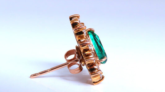 Lab Created Emerald Natural Diamond Stud Earrings Jacket & Solitaire 14kt Gold