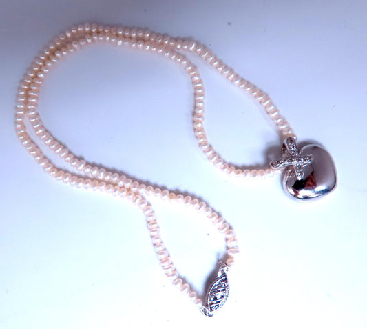 Heart Diamond Slide Pendant on Freshwater Pearls 14kt. .10ct 12408