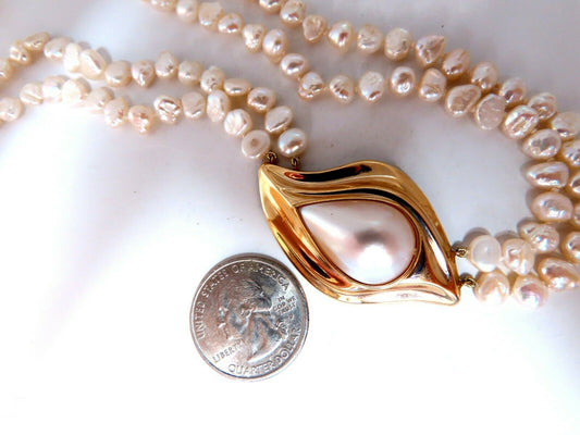 Mabe Pearl Fresh Water Double Stranded Bead Necklace 14kt 16 inch