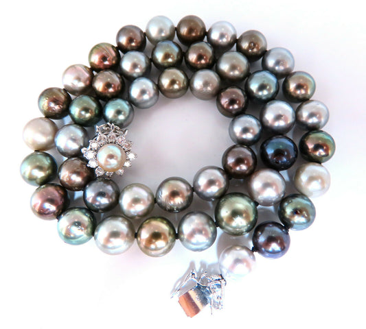 GIA certified Natural Multicolor Tahitian Saltwater Pearls necklace 9m 14k