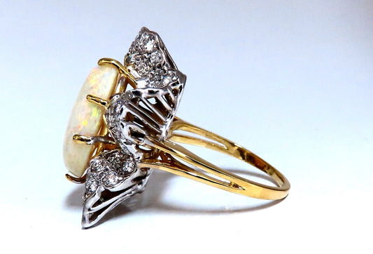 GIA Certified 8.04ct natural cabochon opal diamonds cocktail ring 14kt