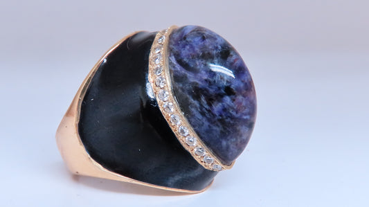 20.00ct. Natural Purple Jade .75ct. diamonds ring Vs-2 14kt gold