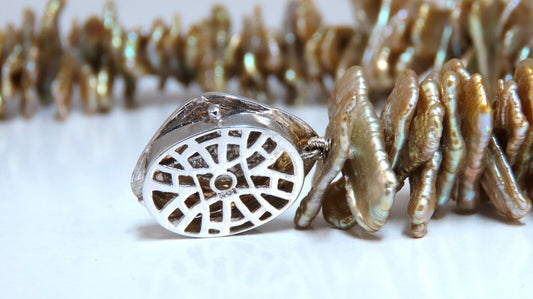 20 mm baroque off shape Pearl necklace 14kt gold diamond clasp