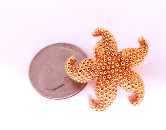 Wide Bahamas Star Fish Coral Beaded Earrings 14kt Gold 12580
