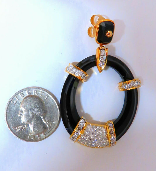 Natural jet black German onyx diamond earrings 14kt