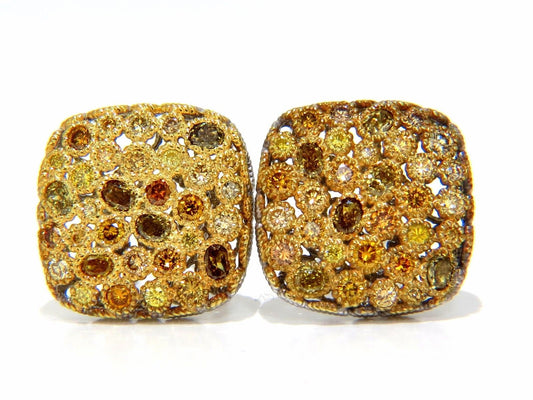 1.60CT NATURAL FANCY COLOR DIAMONDS CLIP COCKTAIL CLUSTER EARRINGS 14KT