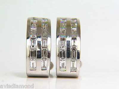 2.00CT BAGUETTE TWO ROWS DIAMOND SEMI HOOP CLIP EARRINGS 14KT