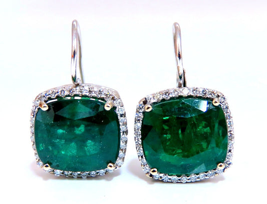 GIA Certified 12.75ct Natural Emeralds Diamond Dangle Earrings 14kt Gold