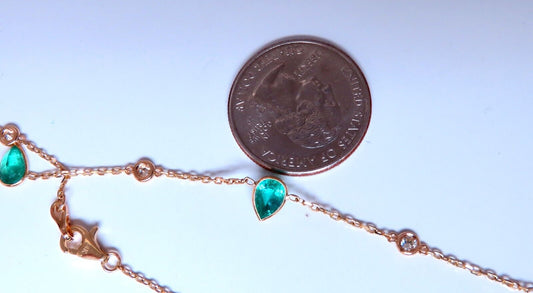 2.70ct. Natural Pear Emeralds Diamonds Yard Necklace 14kt