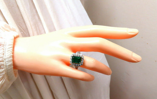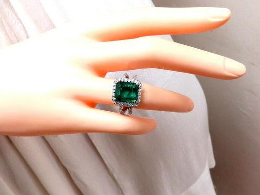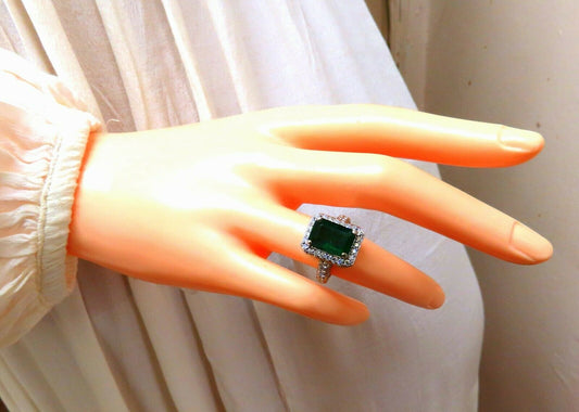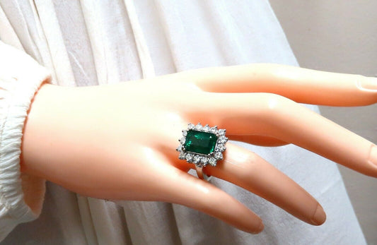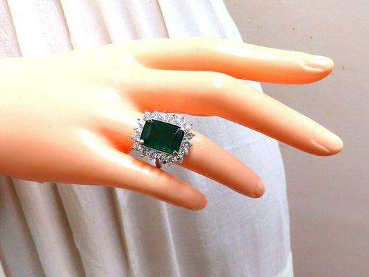 7.15ct Natural Emerald Diamonds Cluster Halo Ring 14kt