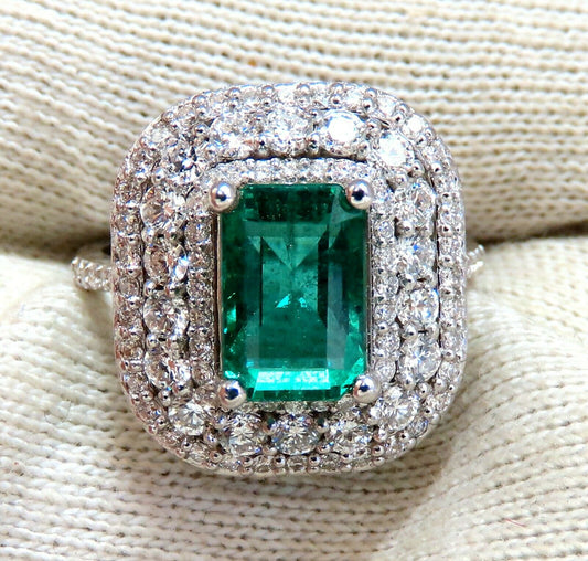 2.70ct Natural Emerald 2.10ct Diamonds Cluster Halo Ring 14kt Fine Select