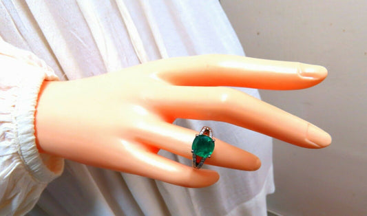 6.70ct Natural Vivid Green Emerald Diamonds Ring 14kt Split Shank Dub Shoulder