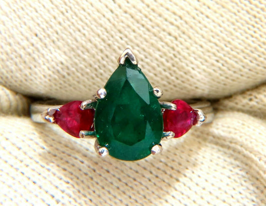 3.01ct natural pear-shaped emerald cut emerald ruby ring 14kt