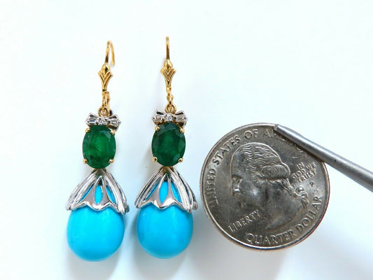 3.20ct Natural Emeralds Turquoise Diamonds Dangle Earrings 14 Karat