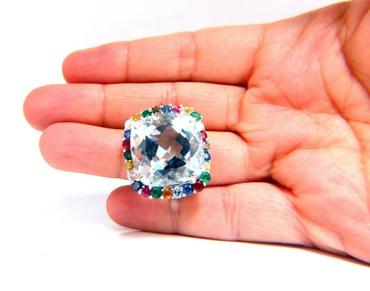 GIA Certified 41.62ct Natural Aquamarine Diamonds & Color Sapphires Ring 14kt