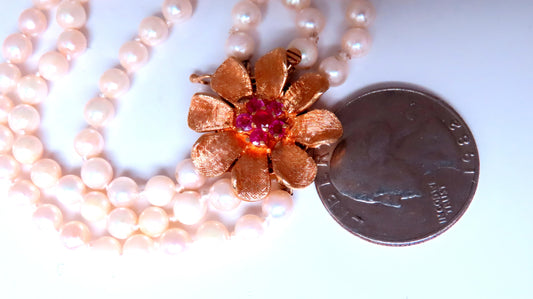 Natural Ruby Vintage Pearl Stranded Necklace 14kt Gold 12391