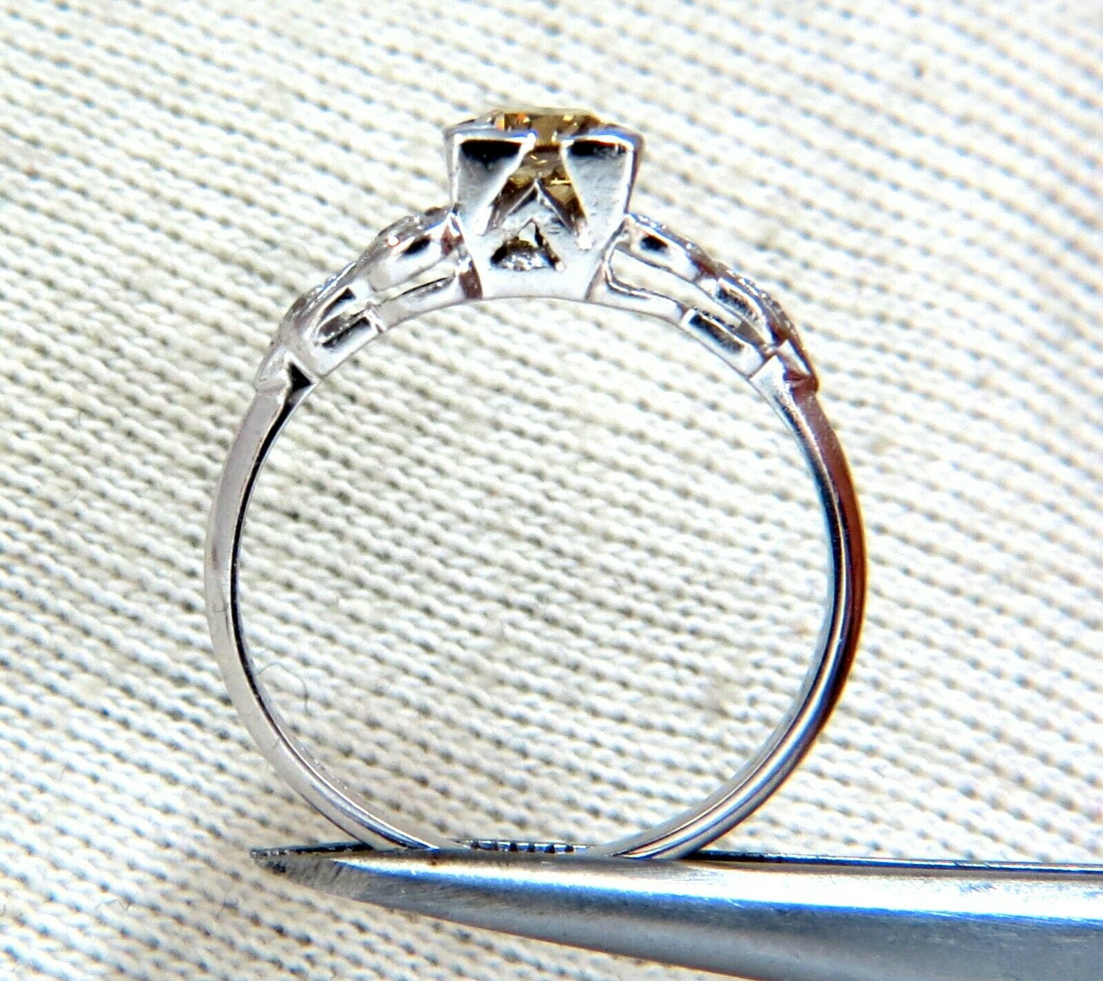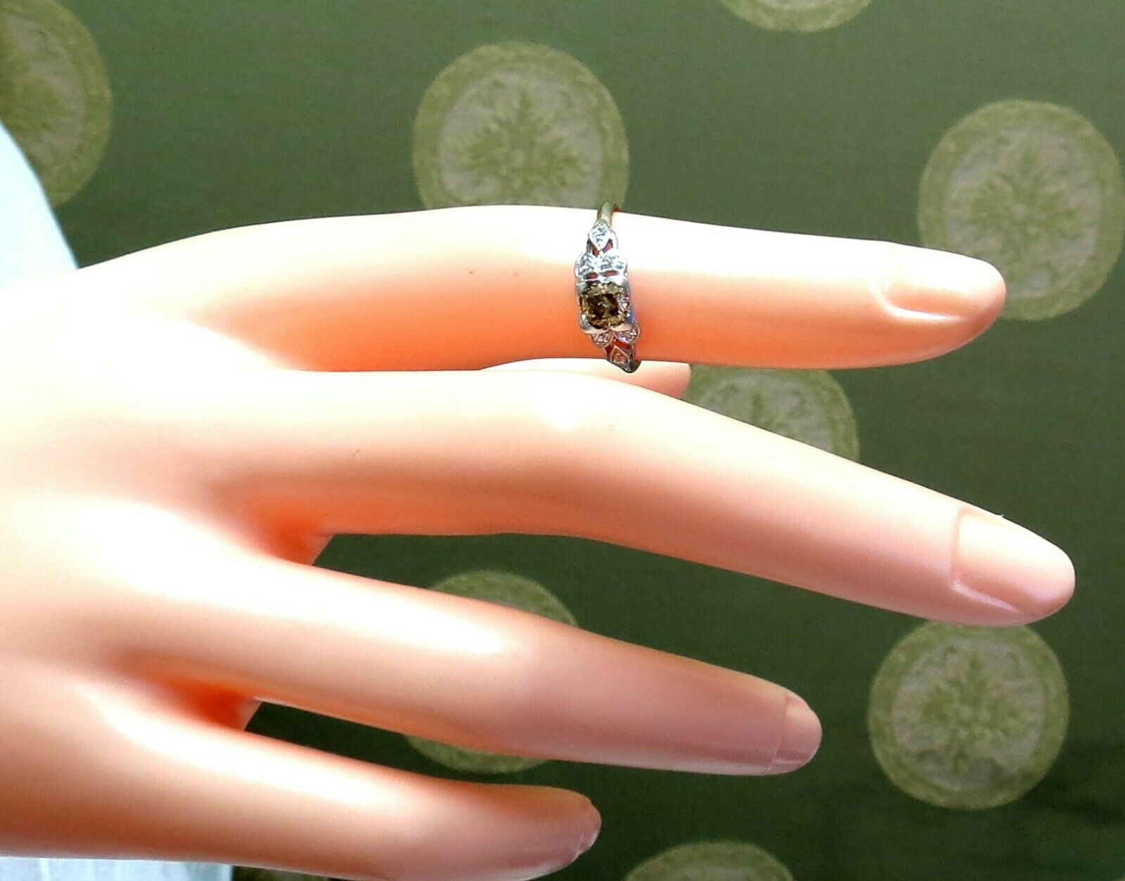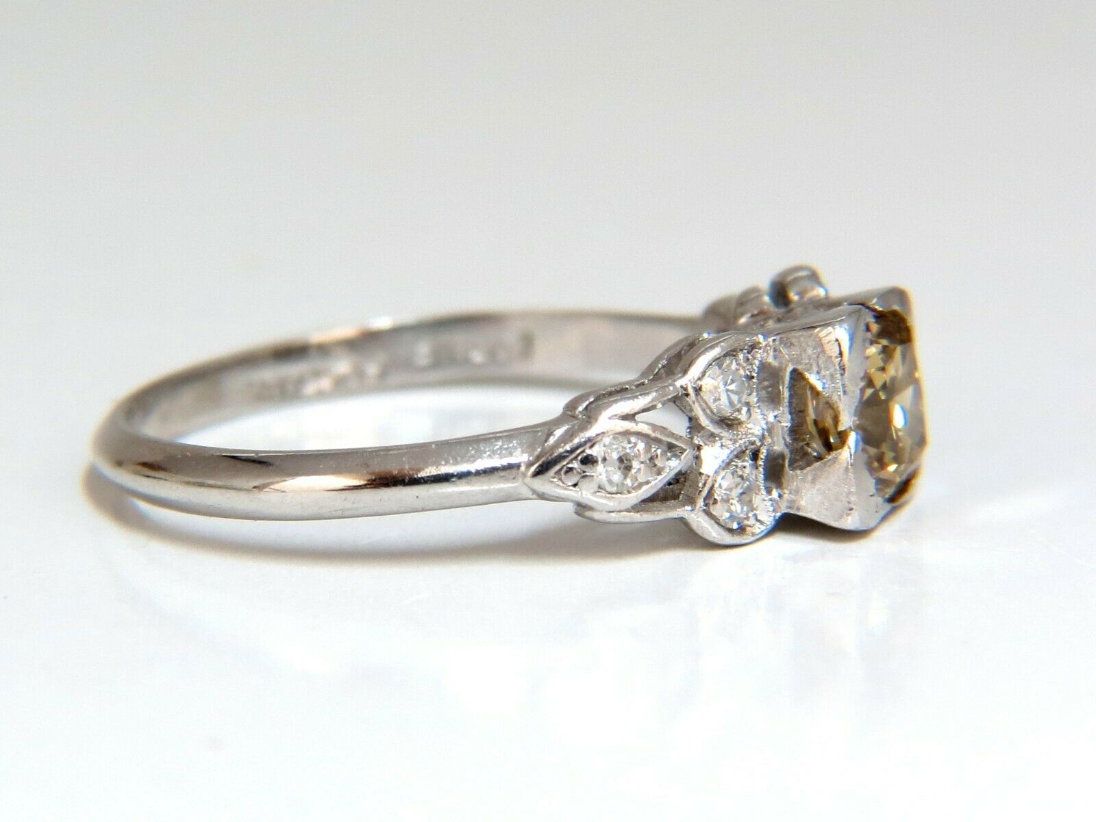 .60ct Natural Yellow Green Brown Diamond Vintage Gilt Ring Platinum