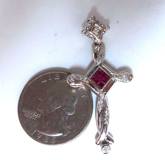 .35ct Natural Ruby Diamonds Modern Cross Pendant 18kt