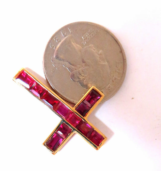 3.50ct Natural Ruby Cross Pendant 14kt Channel Baguette