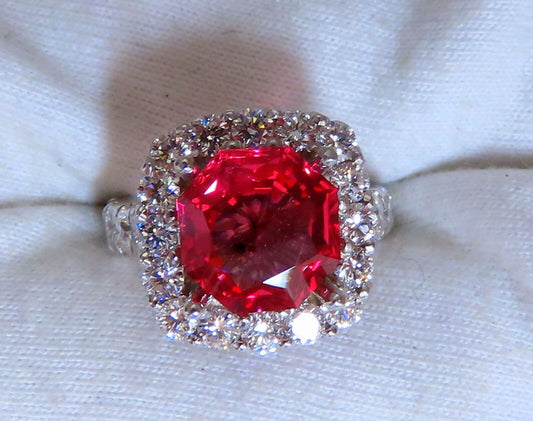 GIA Certified Natural No Heat Spinel 3.86ct Diamonds Cluster Ring 14Kt