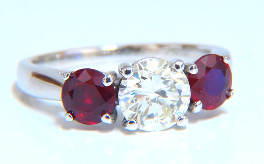 GIA Certified 1.06ct Natural Round Diamond Ruby ring Classic Three Platinum