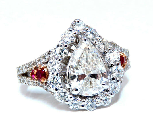 2.40ct Natural Pear Shaped Diamond Ruby Cocktail Halo Cluster Ring 14 Karat