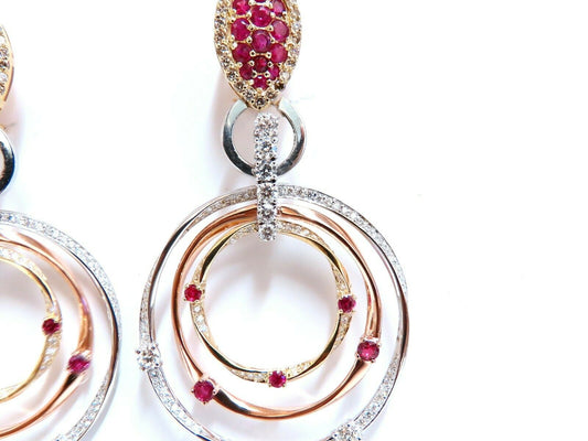 4.24ct natural red ruby diamond hoop earrings 14kt gold three row Intricate
