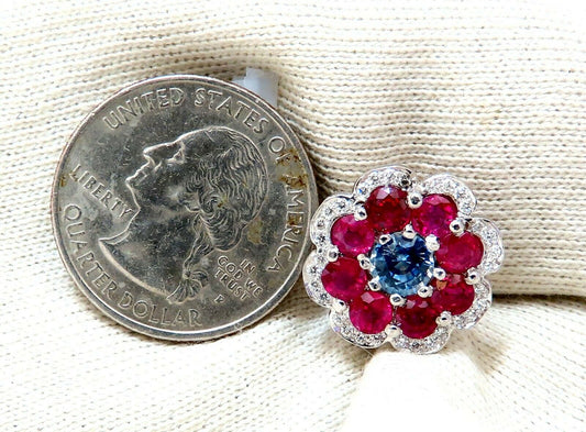 .76ct Fancy Color Diamond Ruby Cocktail Circular Cluster Halo Ballerina Ring 14k
