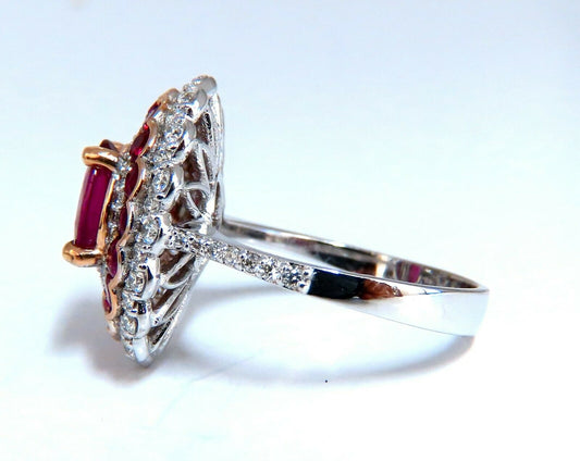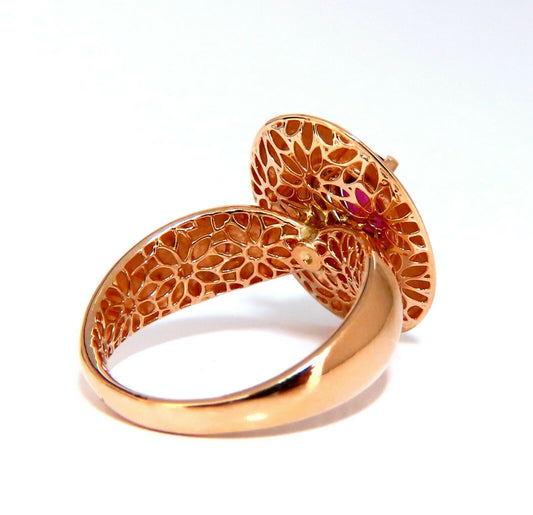 2.36Ct Natural Ruby Diamonds 4 Tier 3D Cocktail Petal Diamond Ring 18kt