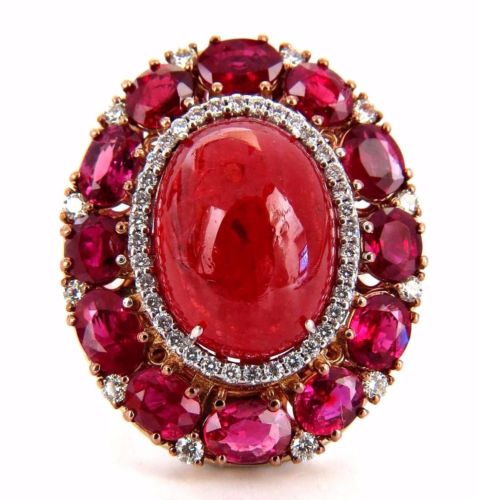 GIA Certified 20.30ct Natural Rhodonite Ruby Diamonds Cocktail cluster ring 18kt