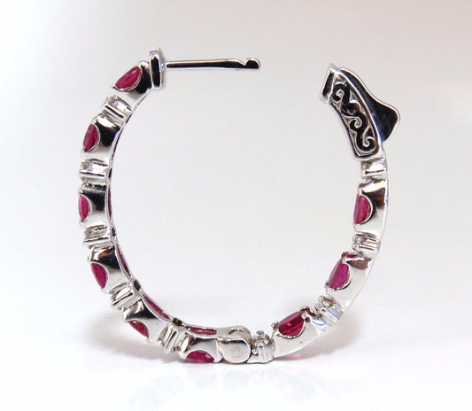 4.58ct natural red ruby diamond hoop earrings 14kt gold
