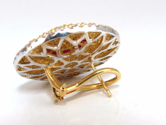9.55ct natural ruby diamonds cluster earrings 18k Circular Dome Omega Clips