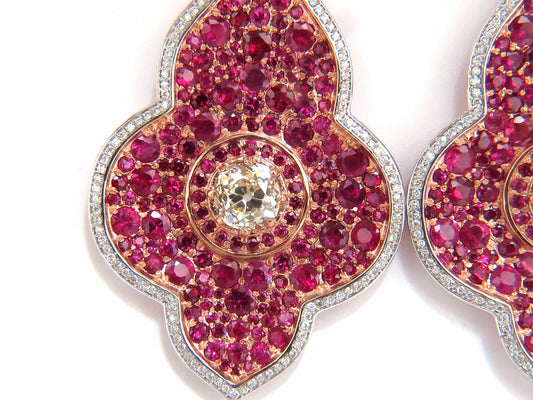 GIA Certified 35.27ct Natural Ruby Diamonds Dangle earrings 18kt Posh Priemeir