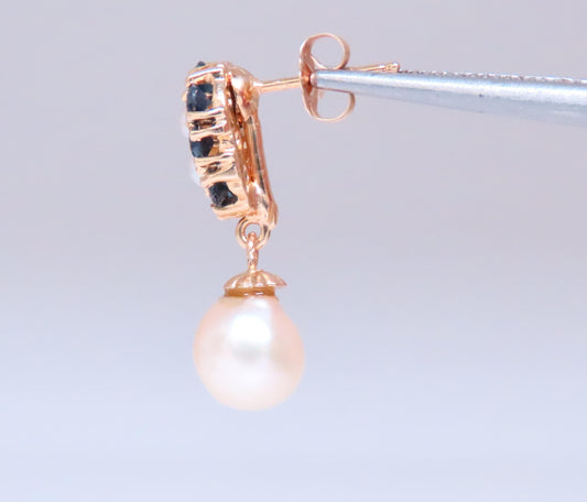 8.5mm Pearl 2ct Sapphire Dangle Earrings 14kt 12499