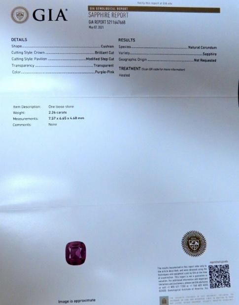 2.26ct GIA Certified Natural Purple Pink Sapphire Diamonds Ring 14kt Gold #12339