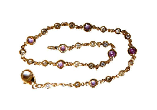 Natural Pink Sapphires Diamonds Tennis Bracelet 14kt 12468