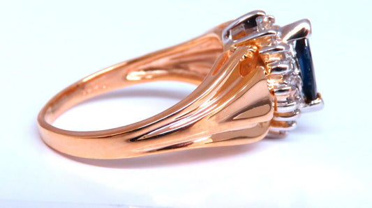 1.25ct Natural Sapphires Diamonds Ring 14kt Gold Three stone style