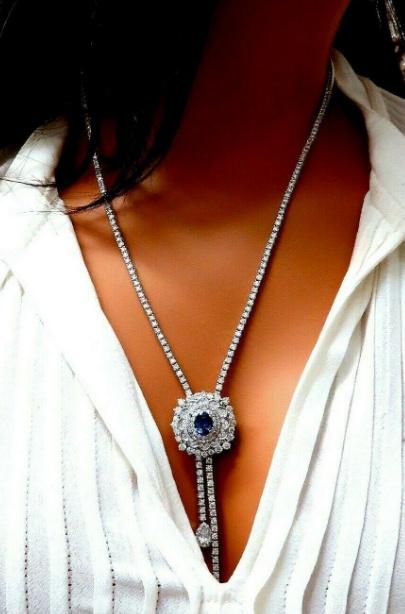 Cluster Bolo Necklace Sapphire Diamonds 18kt Gold GIA Certified 17.30ct #12349