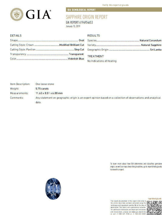 5.75ct GIA Certified Natural No Heat Blue Sapphire Ring 18 Karat Traditional