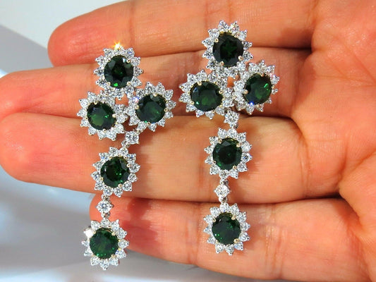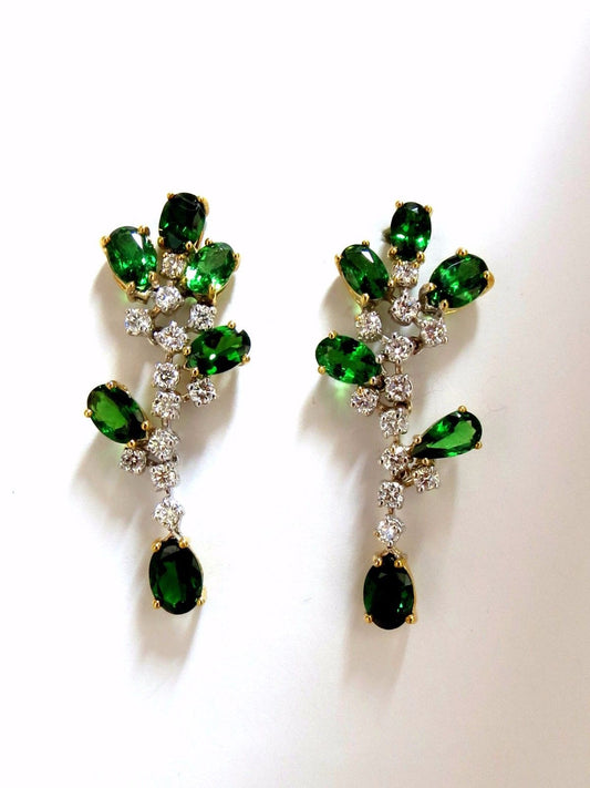 8.77ct natural vivid green tsavorite diamond dangle earrings 18kt cluster vine