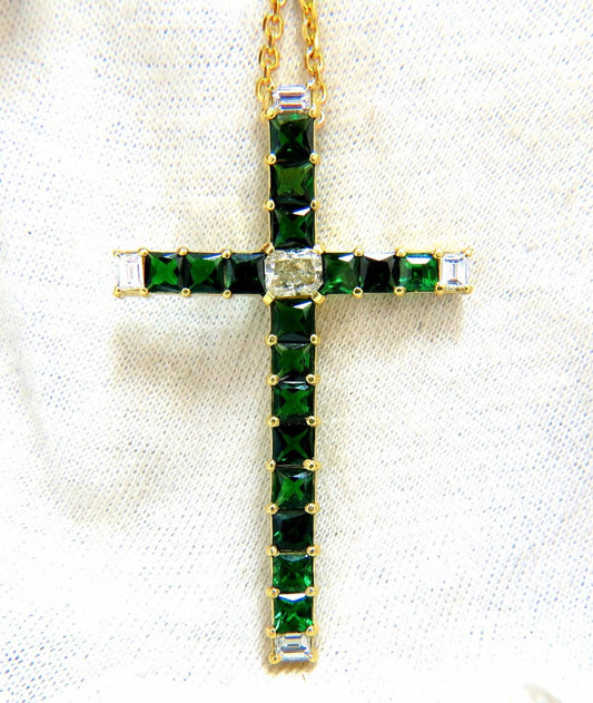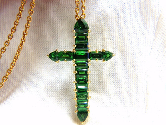 7.42CT NATURAL VIVID GREEN TSAVORITE DIAMONDS CROSS PENDANT 14KT