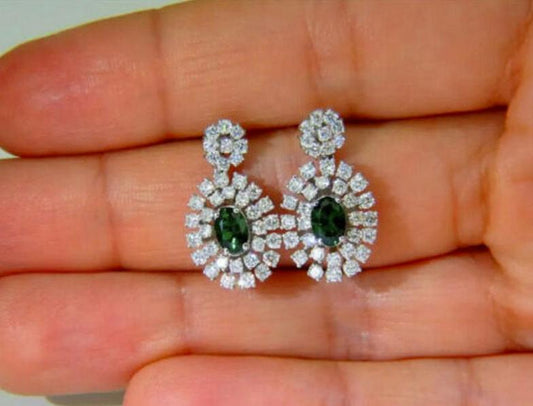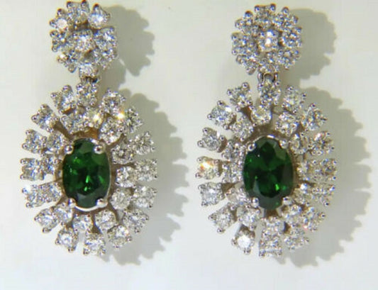 3.08ct Natural Tsavorite Diamonds Dangle Earrings 14kt