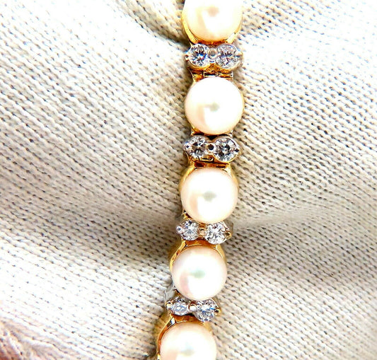 3.03ct Natural Akoya Pearls & Diamonds Riviera Necklace 14kt