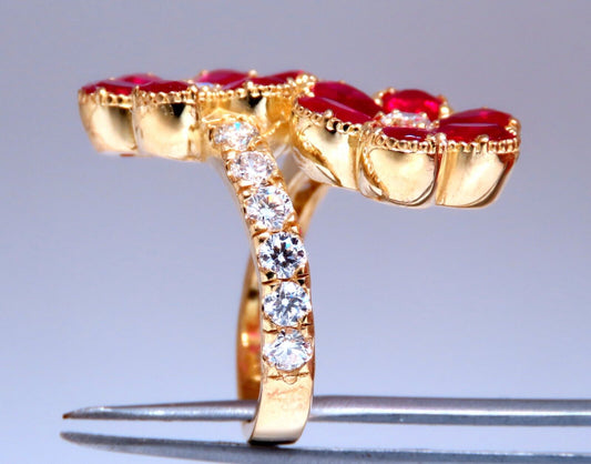5.20ct Natural Ruby Diamonds Flower Cluster Ring 18kt yellow gold