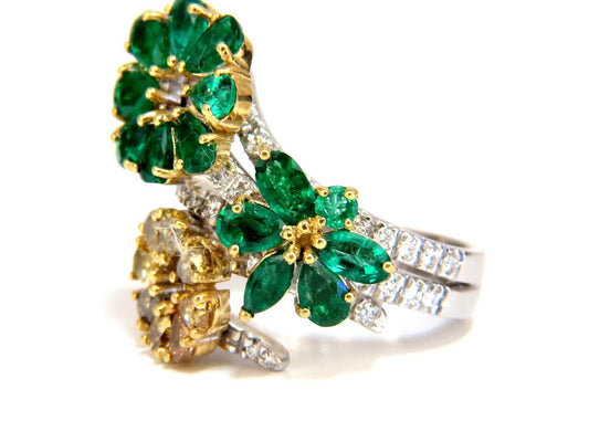 4.36ct Natural Emeralds diamond cocktail cluster ring 18kt
