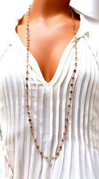 56ct Natural Tourmaline Amethyst Peridot Station Yard Necklace 14kt 12521